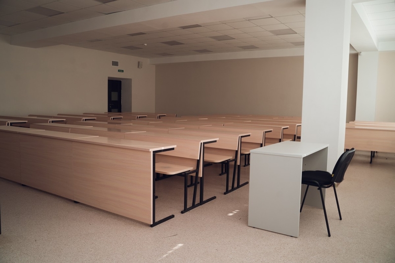 Учебные аудитории оборудованы специализированными учебными столами для студентов с нарушениями опорно-двигательного аппарата.