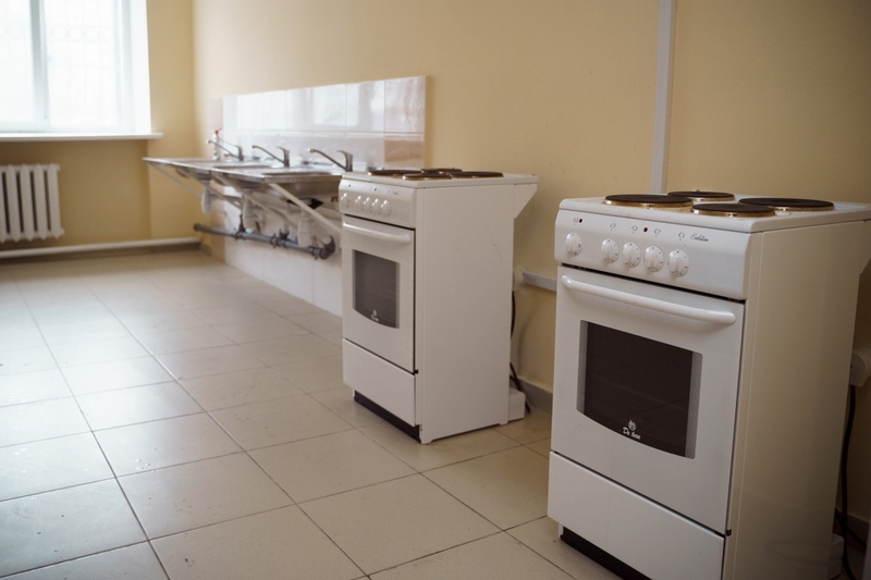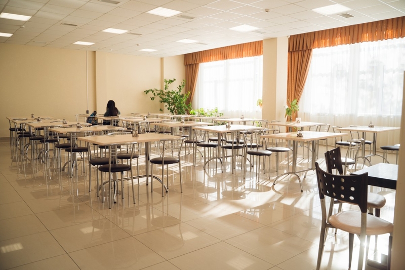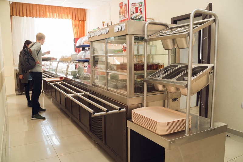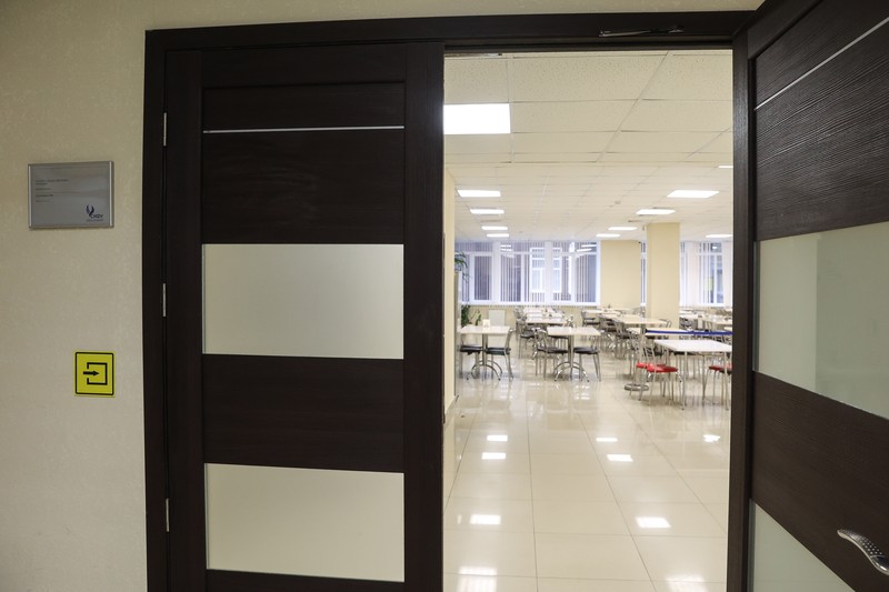 Столовая корпуса имеет широкие дверные проемы для облегчения движения и маневра лиц с ОВЗ.