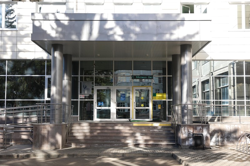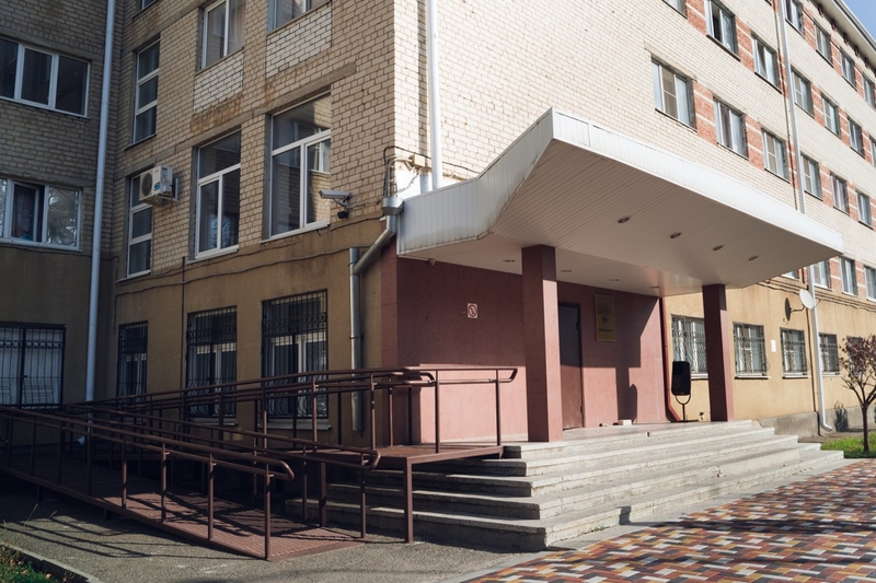Вход в корпус института, оборудованный тактильной табличкой со шрифтом Брайля и дверью с контрастно окрашенной поверхностью. Входная группа расположена без ступенек и пандуса, что облегчает вход для маломобильных лиц. Входная группа оборудована кнопкой вызова для обеспечения возможности доступа людей с ограниченными возможностями в здания.