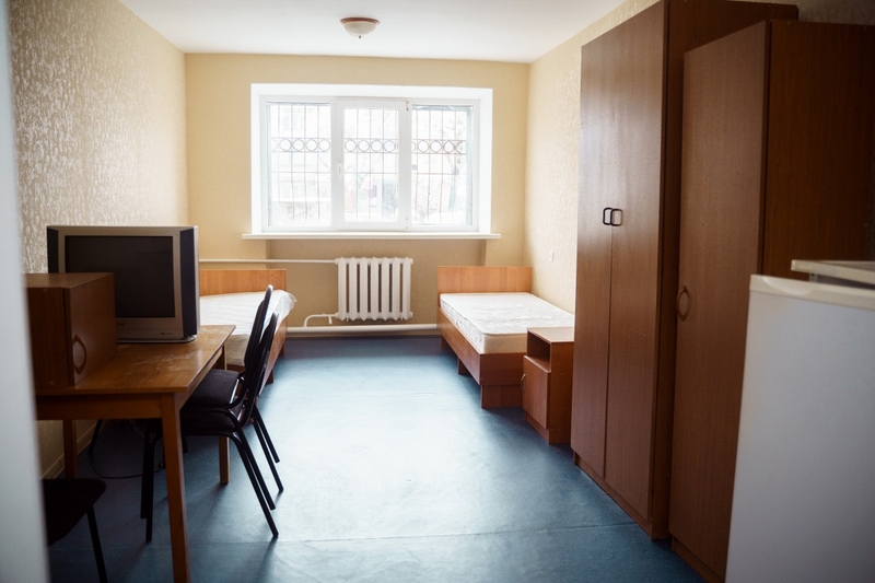 Входная группа в общежитие оборудована пандусом с односторонней организацией движения.
