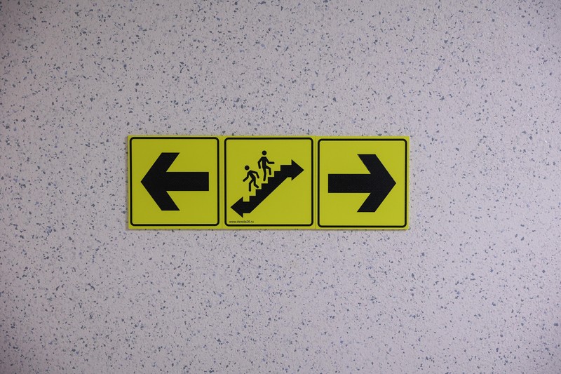 Навигационные таблички внутри здания помогают ориентироваться по ходу движения.