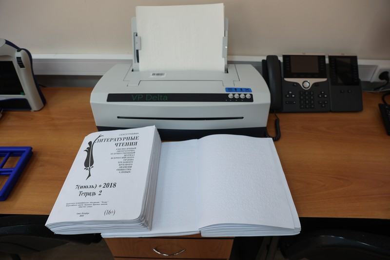 Принтер для печати рельефно-точечным шрифтом Брайля (ViewPlus Delta). Устройство вывода информации (в комплекте с ПО (DBT), ПК, специальной бумагой) для лиц с нарушениями зрения, владеющих азбукой Брайля (чтение, письмо). Выводит текст шрифтом брайля. Стационарное устройство с возможностью перемещения.