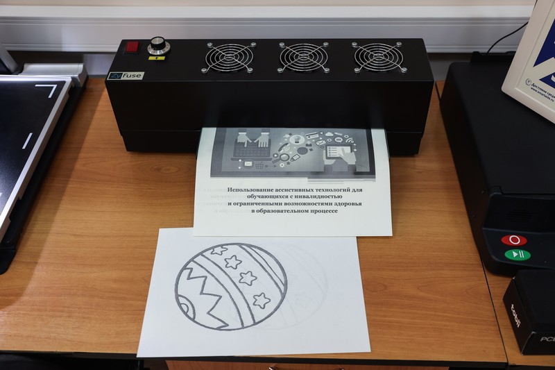 Нагреватель Zyfuse позволяет создавать рельефные изображения на термобумаге (используется преимущественно в работе с лицами с нарушениями зрения). Стационарное устройство с возможностью перемещения.