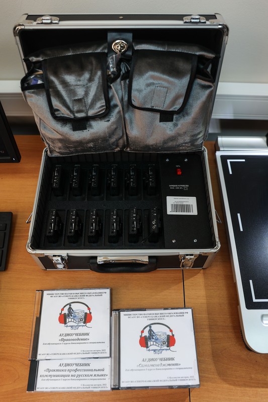 Радиокласс Сонет-РСМ. Звукоусиливающее оборудование для лиц с нарушениями слуха (для коллективной работы, охват – 50кв.м., для группы пользователей). Стационарное устройство с возможностью перемещения. Аудиоучебники – обучающие материалы для студентов с нарушениями зрения в аудиоформате по дисциплинам учебного плана.