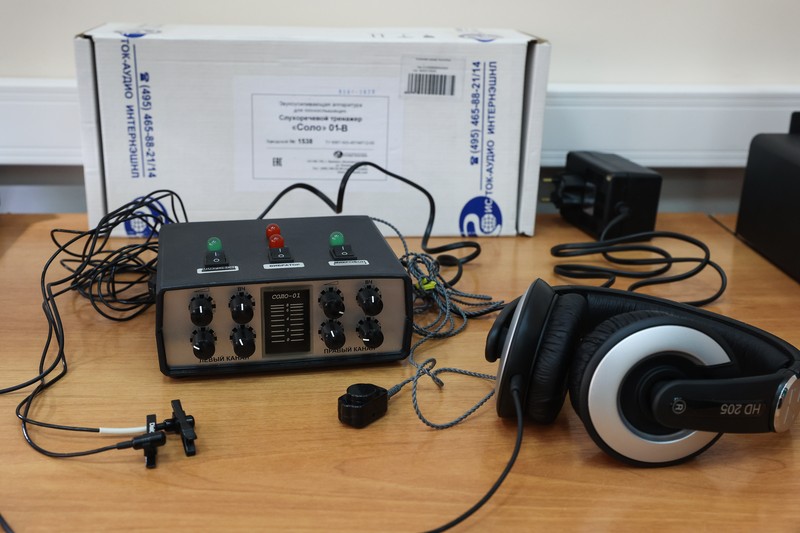 Слухоречевой тренажер Соло-01В предназначен для индивидуальной работы преподавателя с обучающимся с потерей слуха I-IV степени и дефектами речи с целью коррекции слуха и развития речевых навыков. Слухоречевой тренажер обеспечивает широкополосное 2-х канальное усиление звуковых сигналов, поступающих с микрофонов. Стационарное устройство с возможностью перемещения.