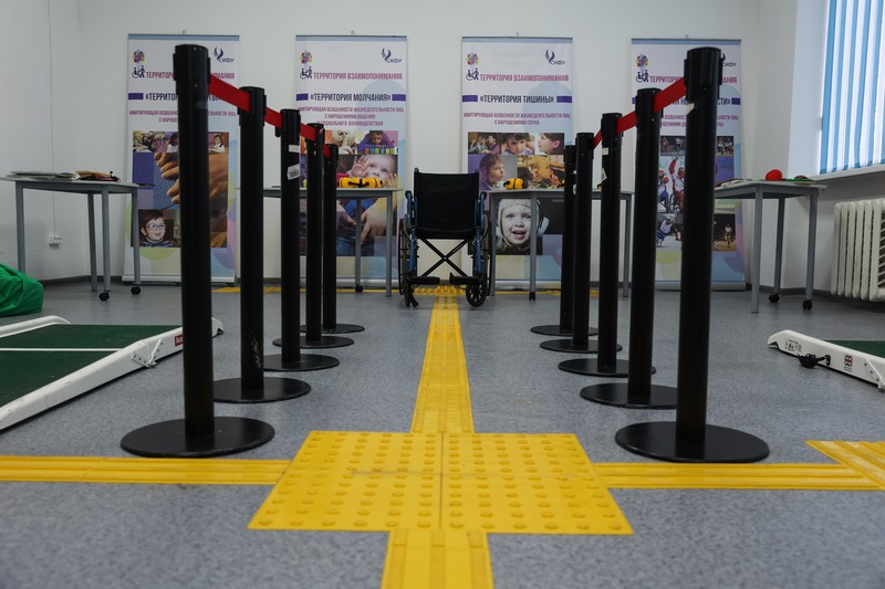 Площадки территории: Территория тишины, имитирующая особенности жизнедеятельности лиц с нарушениями слуха. Территория молчания, имитирующая особенности жизнедеятельности лиц с нарушениями коммуникации и социального взаимодействия. Территория темноты, имитирующая особенности жизнедеятельности лиц с нарушениями зрения. Территория немобильности, имитирующая особенности жизнедеятельности лиц с нарушениями опорно-двигательного аппарата.
